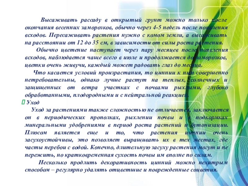 развивать познавательные и творческие способности детей, учить правильно ухаживать за растениями.
