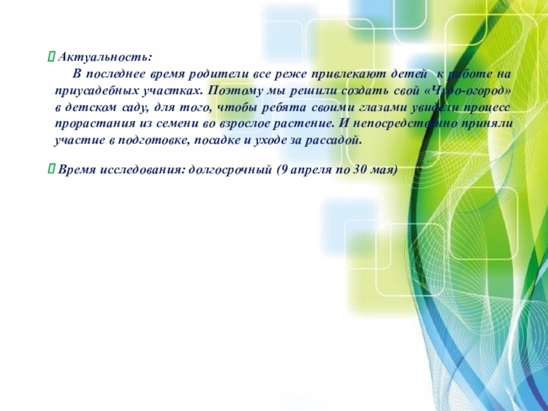 Время исследования: долгосрочный (9 апреля по 30 мая)