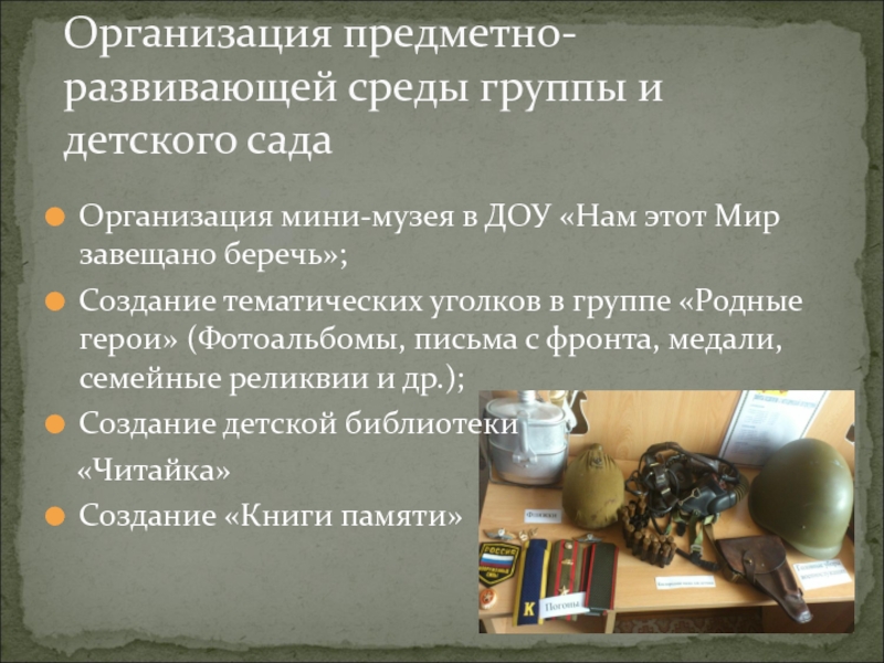 Организация предметно-развивающей среды группы и детского сада