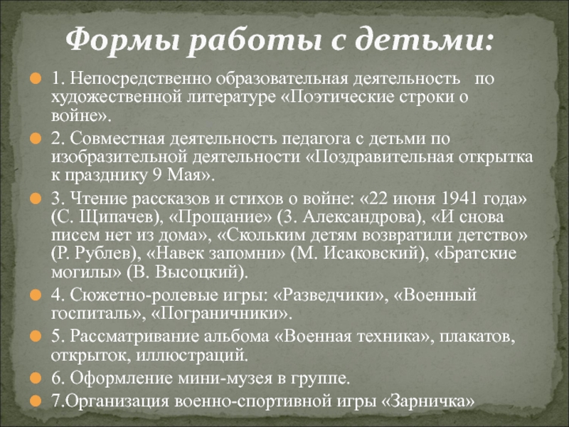 Формы работы с детьми: