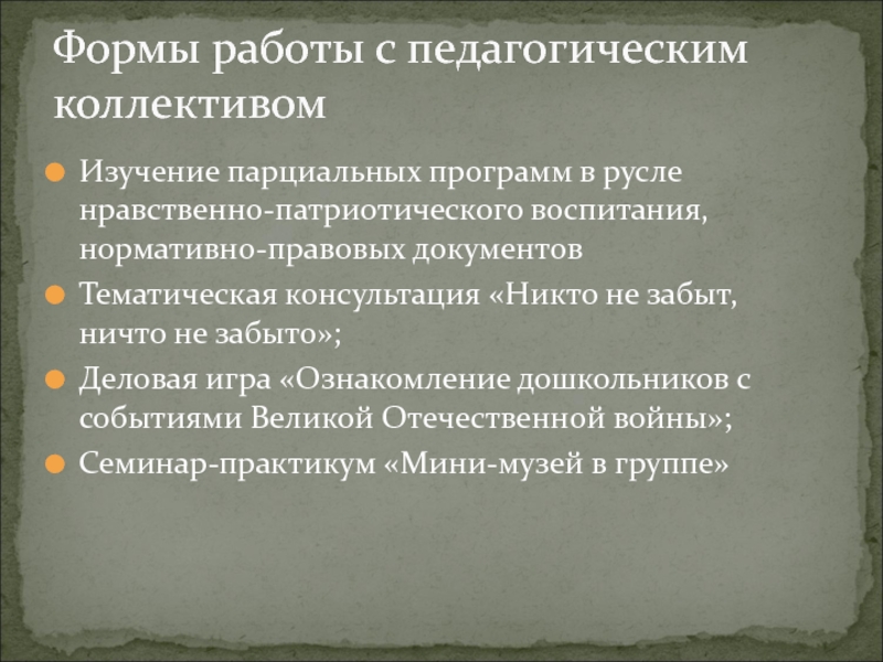 Формы работы с педагогическим коллективом