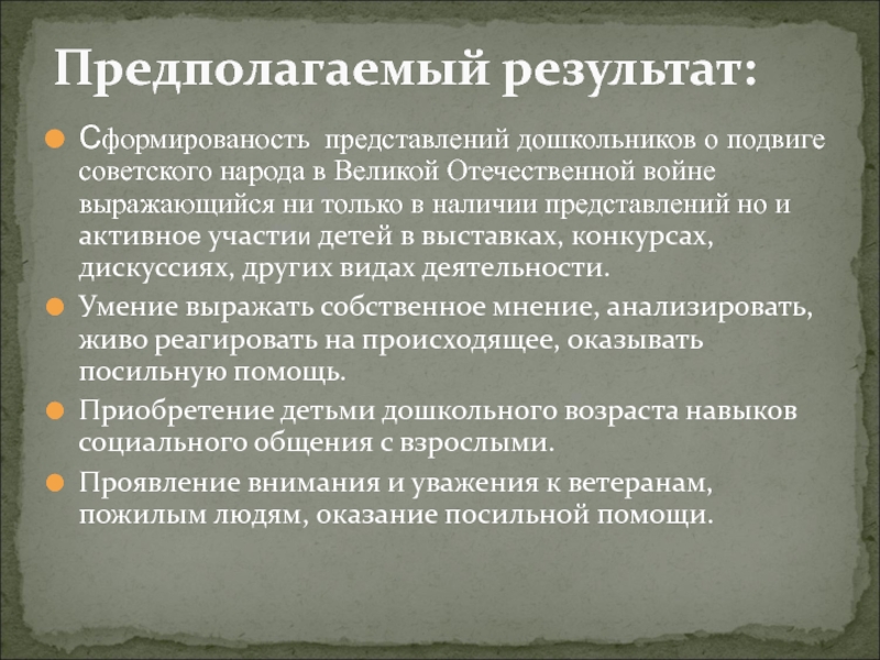 Предполагаемый результат:
