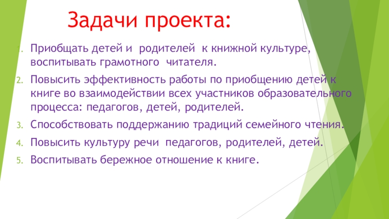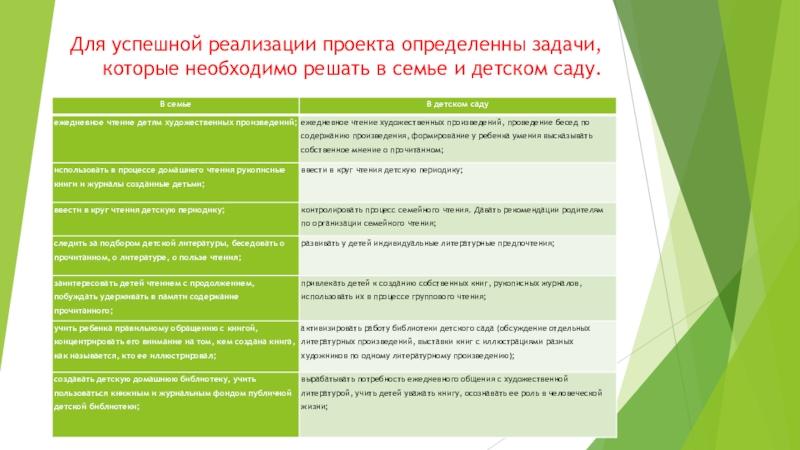 Слайд 9Для успешной реализации проекта определенны задачи, которые необходимо решать в семье
