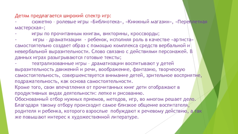 Слайд 11Детям предлагается широкий спектр игр: