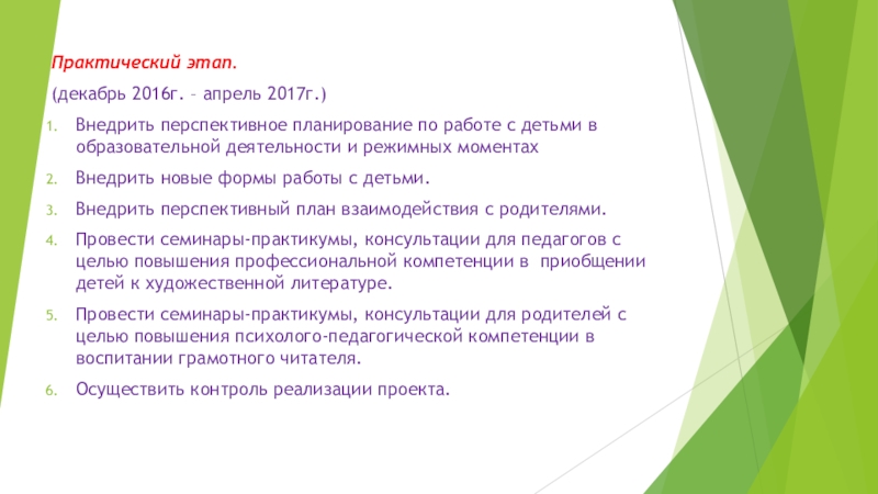 Внедрить перспективное планирование по работе с