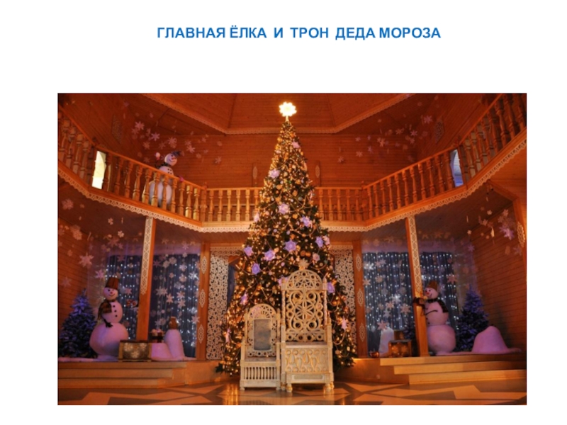Слайд 9ГЛАВНАЯ ЁЛКА И ТРОН ДЕДА МОРОЗА