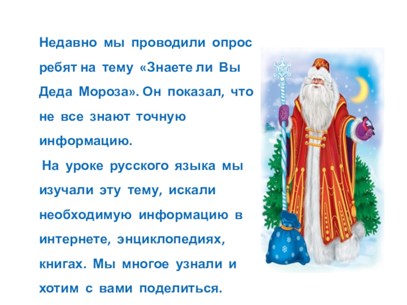 Слайд 2Недавно мы проводили опрос ребят на тему «Знаете ли Вы Деда