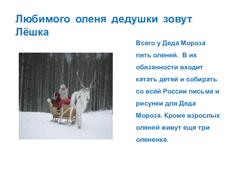 Слайд 16Любимого оленя дедушки зовут Лёшка