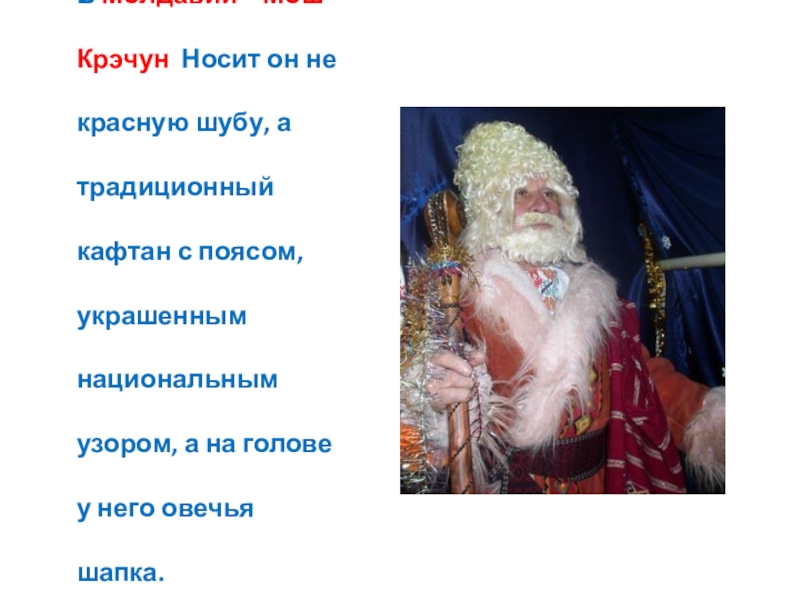 Слайд 22В Молдавии – Мош Крэчун Носит он не красную шубу, а