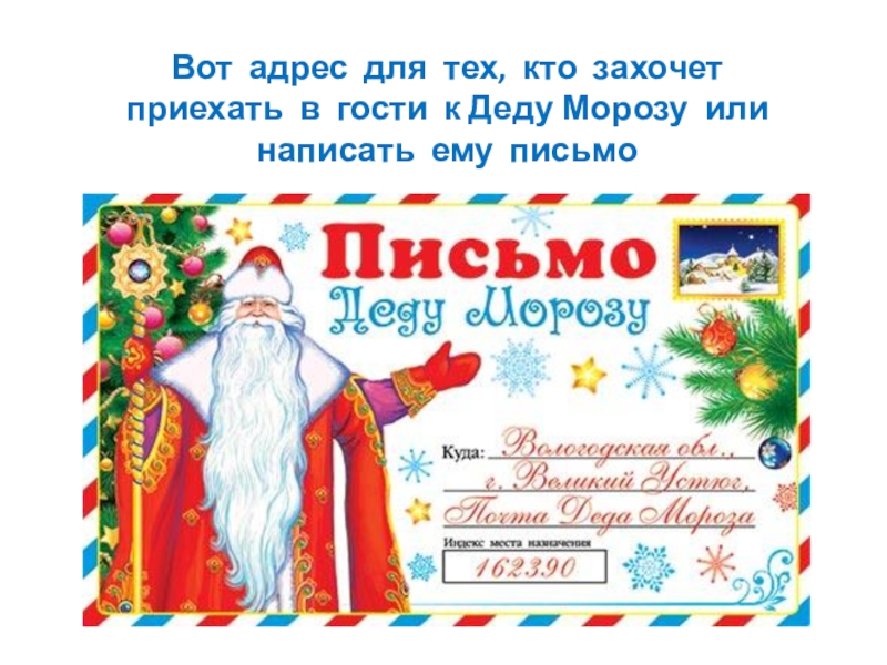 Слайд 10Вот адрес для тех, кто захочет приехать в гости к Деду