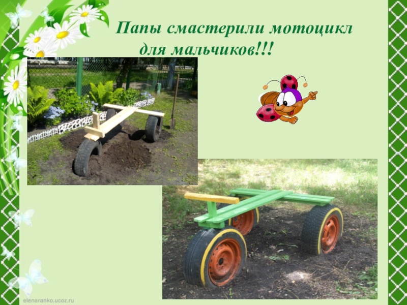 Собрать необходимый бросовый материал для изготовления малых форм и выносного материала (пластиковые бутылки, шины, шишки, ракушки и т.д.).