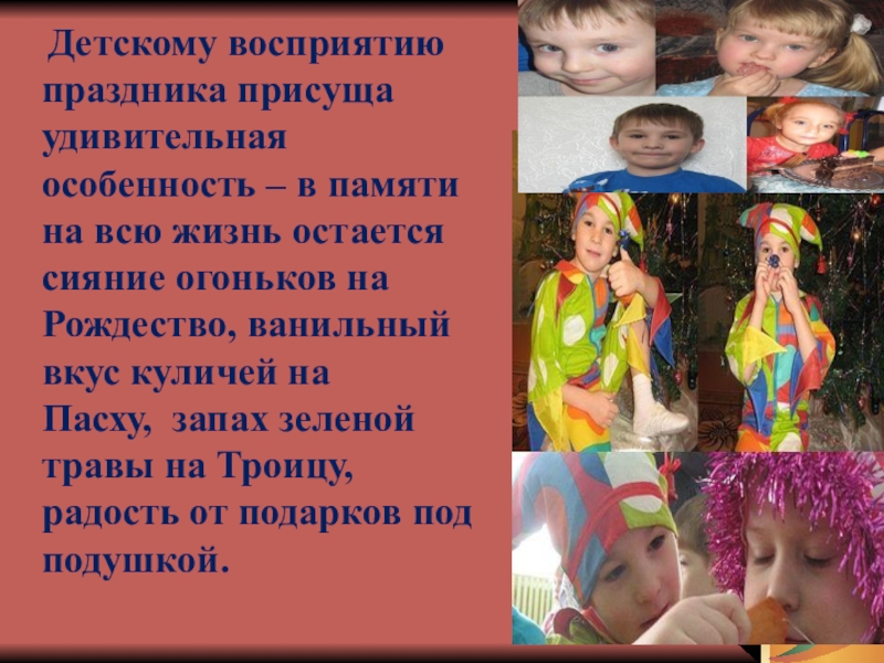 Слайд 39 Детскому восприятию праздника присуща удивительная особенность – в памяти