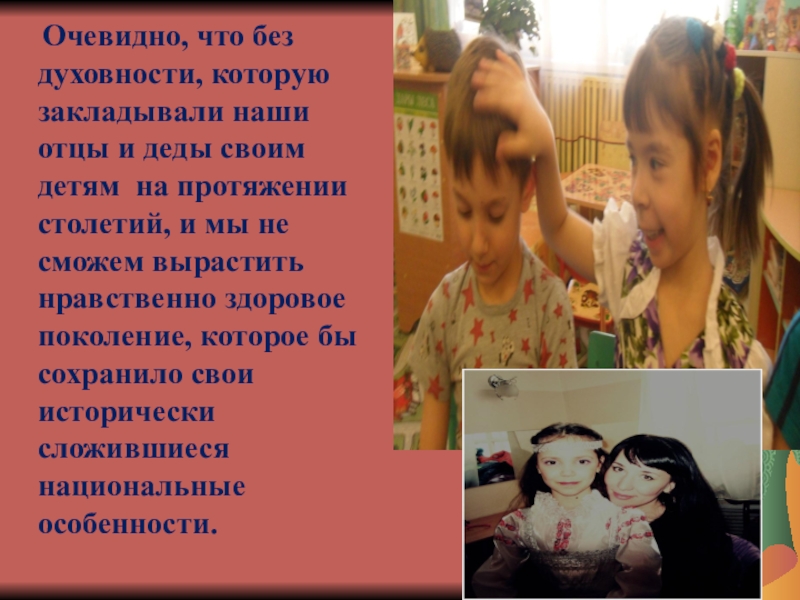 Слайд 5 Очевидно, что без духовности, которую закладывали наши отцы и