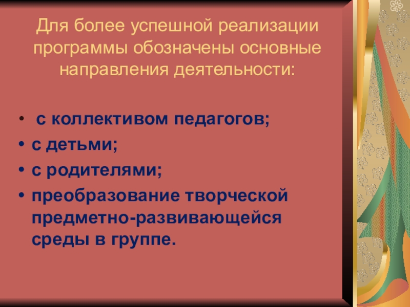 Для более успешной реализации программы обозначены основные направления деятельности: