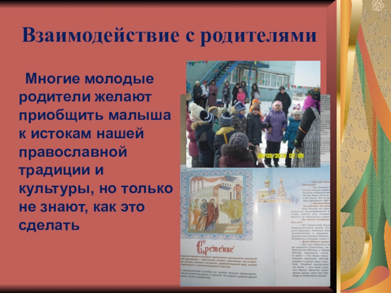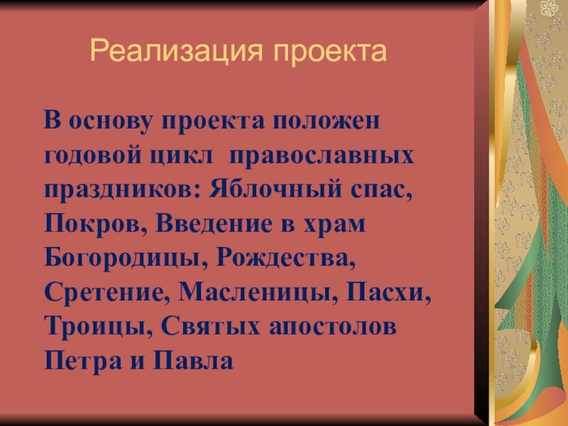 Слайд 6 Предлагая детям ознакомиться с церковными праздниками, мы имеем