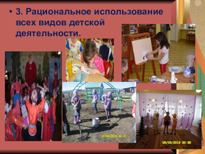 Слайд 163. Рациональное использование всех видов детской деятельности.