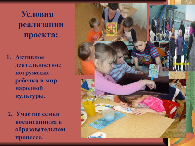 Активное деятельностное погружение ребенка в мир народной культуры.