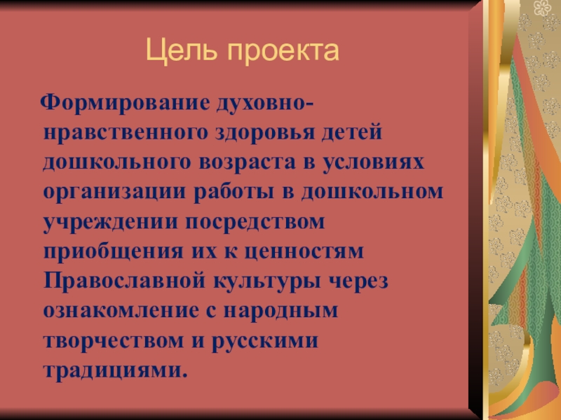 к традициям Православной духовной культуры, в становлении нравственно здоровой и духовно богатой личности ребенка.