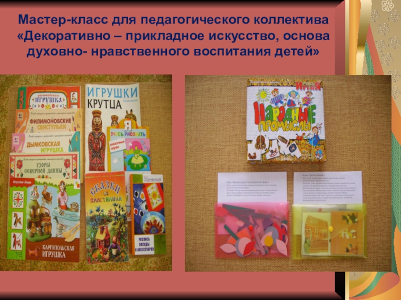 Слайд 34Мастер-класс для педагогического коллектива «Декоративно – прикладное искусство, основа духовно- нравственного