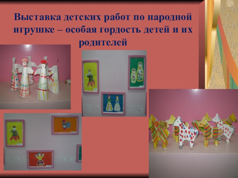 Слайд 32Выставка детских работ по народной игрушке – особая гордость детей и