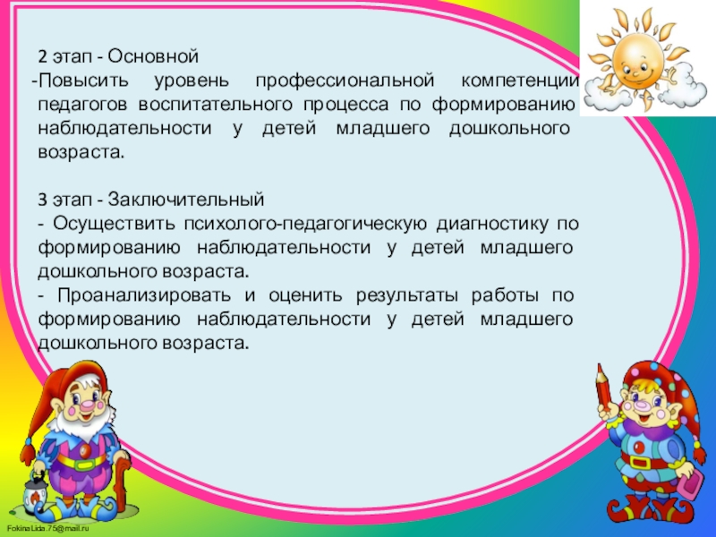 - Проанализировать и оценить результаты работы по формированию наблюдательности у детей младшего дошкольного возраста.