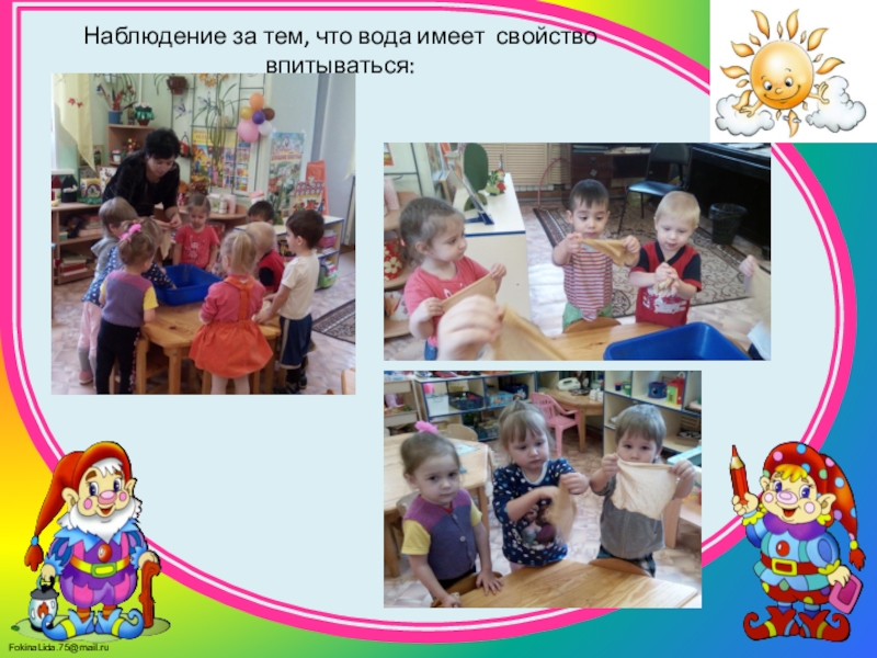 Слайд 15Наблюдение за тем, что вода имеет свойство впитываться: