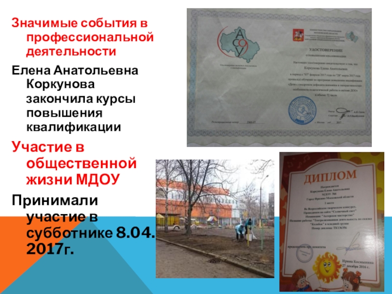 Воспитатель высшей квалификационной категории Коркунова Елена Анатольевна