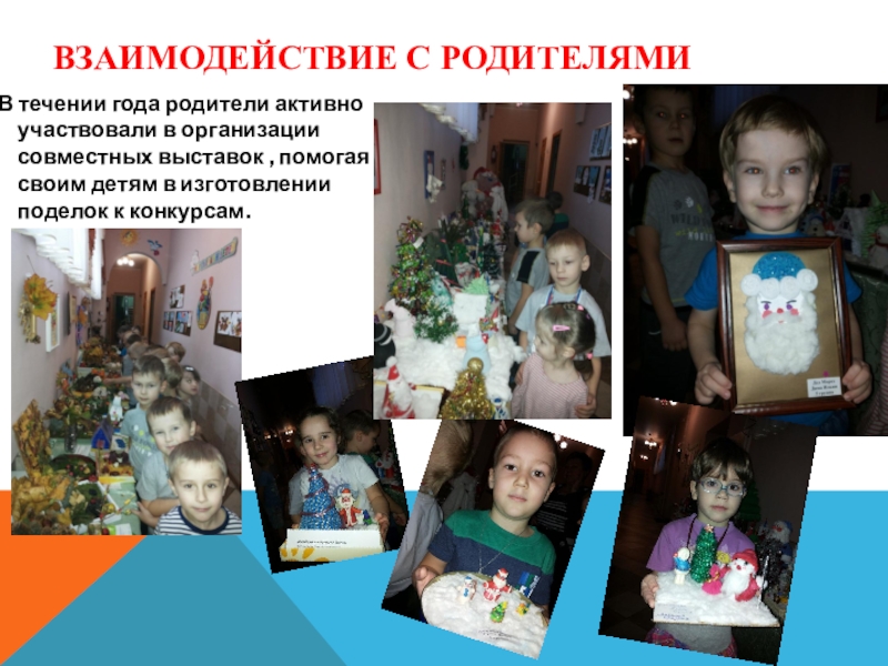 Привлечение родителей к активному участию в жизни группы, праздниках, вечерах досуга, участию в конкурсах.
