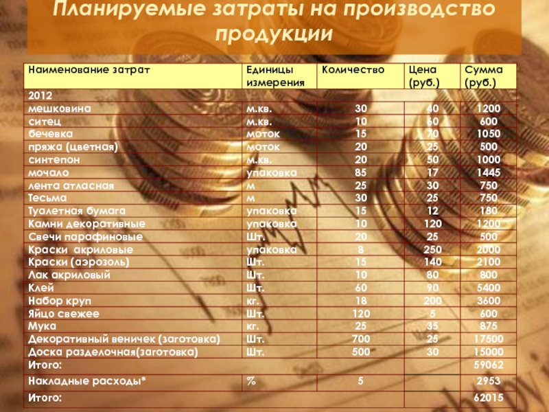 Сметная стоимость бизнес-проекта.