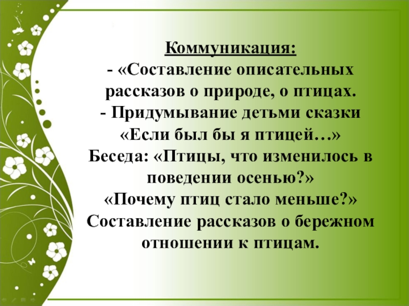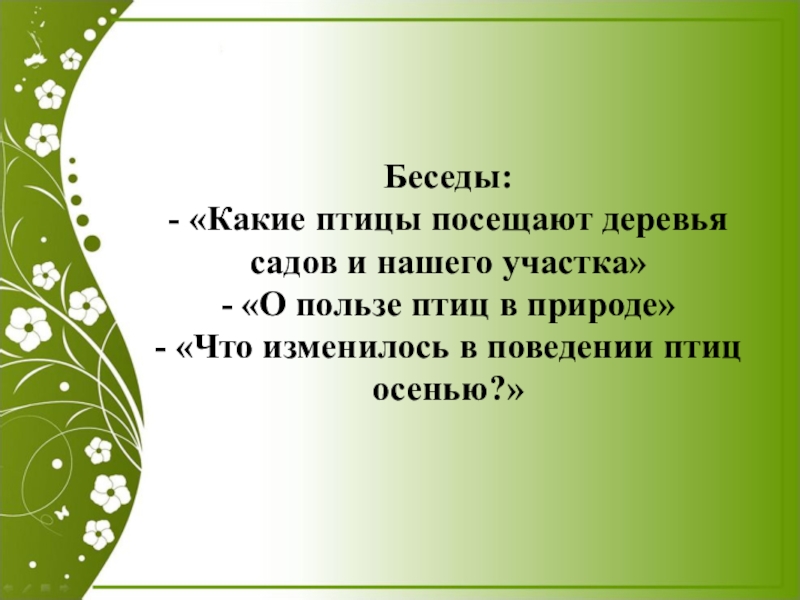 Беседа: «Птицы, что изменилось в поведении осенью?»