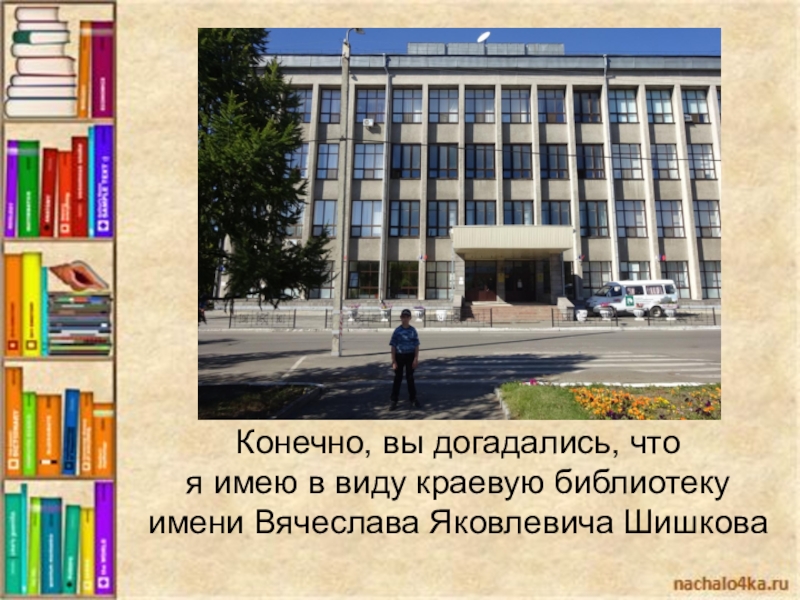 Конечно, вы догадались, что я имею в виду краевую библиотеку имени Вячеслава Яковлевича Шишкова