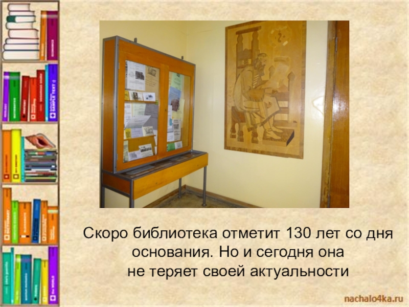 Слайд 11Скоро библиотека отметит 130 лет со дня основания. Но и сегодня