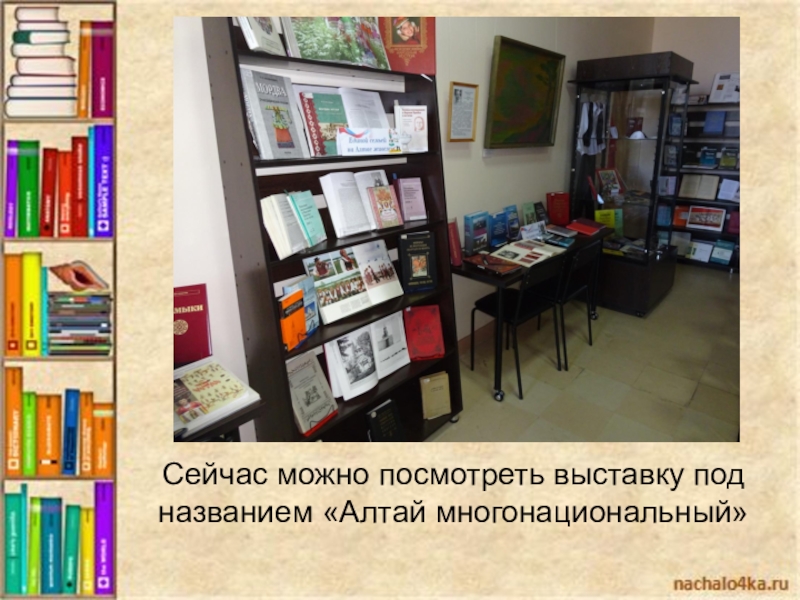 Слайд 8Сейчас можно посмотреть выставку под названием «Алтай многонациональный»