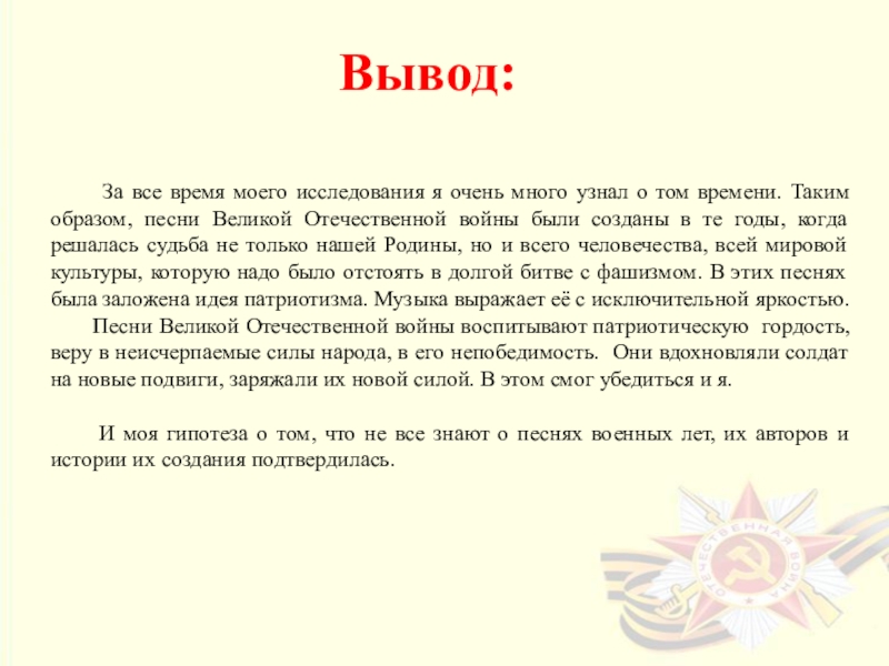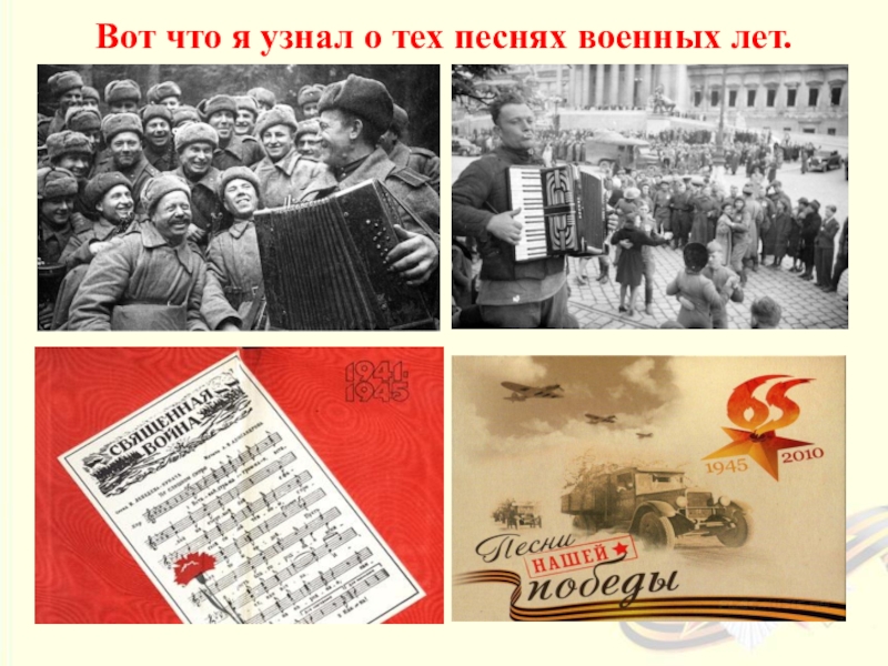 Побудить интерес к песням Великой Отечественной войны.