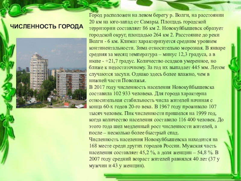 В 1932 году появилась фабрика ветеринарных препаратов. В 1946 году, начал строиться самый крупный на то время в СССР нефтеперерабатывающий завод. Сначала планировалось возвести рядом с ним всего лишь рабочий поселок. Но из-за выгодности места было решено развить поселок и основать промышленный центр. В 1952 году поселок Ново-Куйбышевский преобразовался в город Новокуйбышевск. Впоследствии появились две теплоэлектростанции, химическое и нефтехимическое производство. В 1992 и 2006 годах город был расширен.