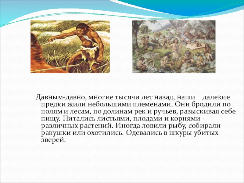 Слайд 5 Давным-давно, многие тысячи лет назад, наши далекие предки жили