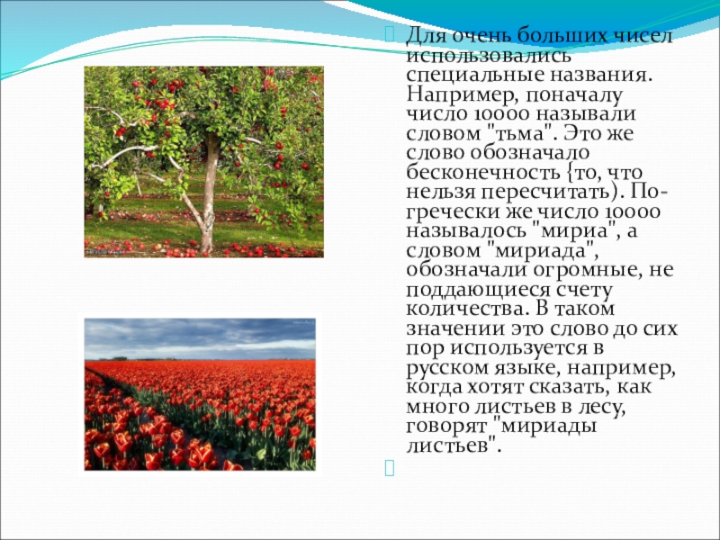 Слайд 27Для очень больших чисел использовались специальные названия. Например, поначалу число 10000