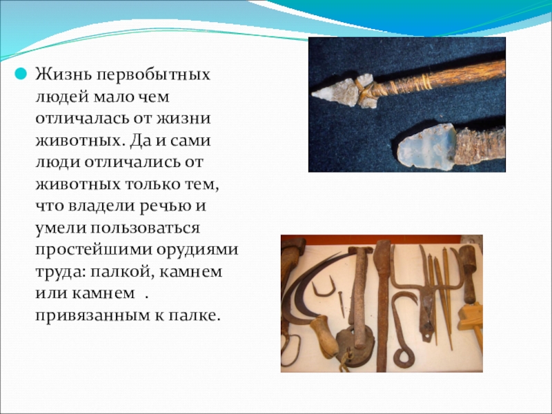 Слайд 6Жизнь первобытных людей мало чем отличалась от жизни животных. Да и