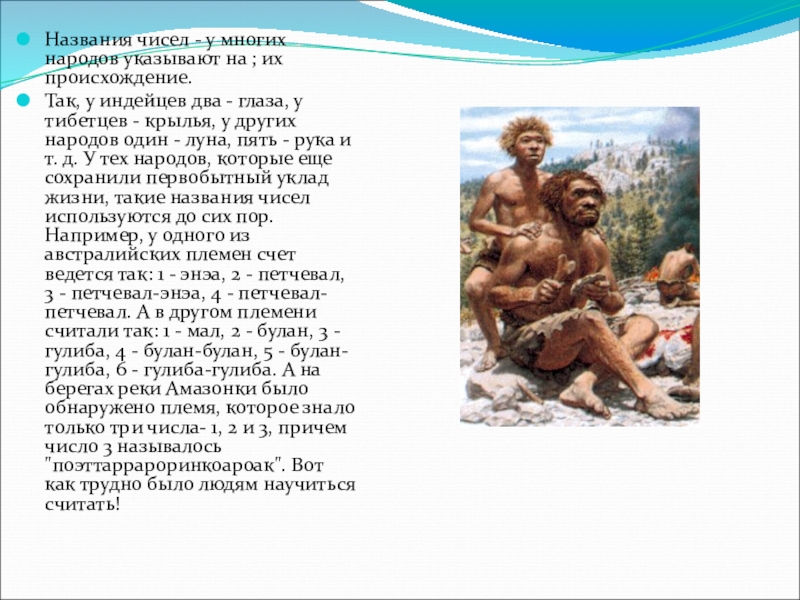 Слайд 14Названия чисел - у многих народов указывают на ; их происхождение.