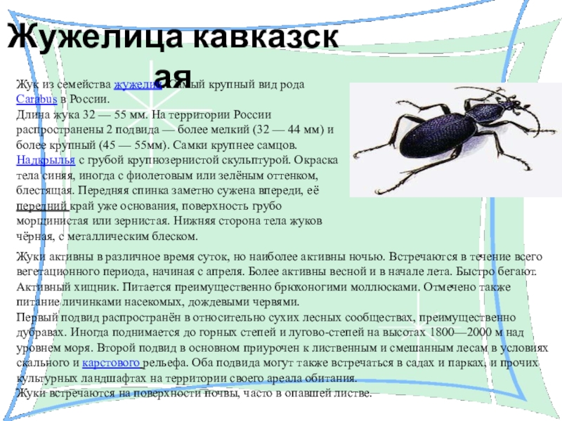 Жук из семейства жужелиц. Самый крупный вид рода Carabus в России.