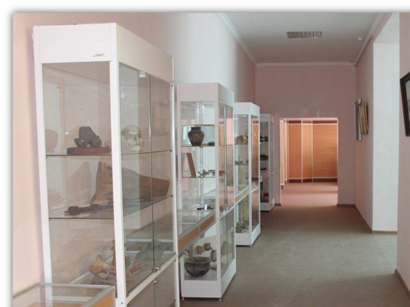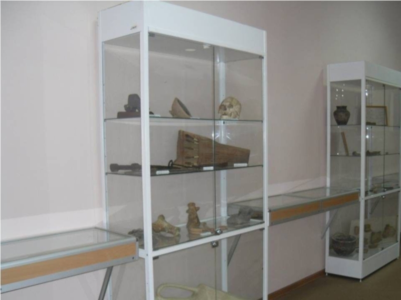 пейзажа родного края. У импровизированного берега реки разместились чучела животных и птиц, на ветвях деревьев расположились хищные птицы степей. В отдельной витрине представлены обитатели подводного мира. Дополнением служат витрины с окаменелостями и минералами, а также фотографии представителей флоры и фауны, обитающих в степном ареале.