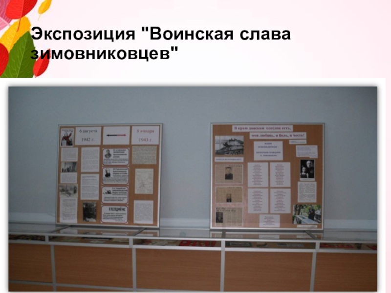 Слайд 22Экспозиция "Воинская слава зимовниковцев"