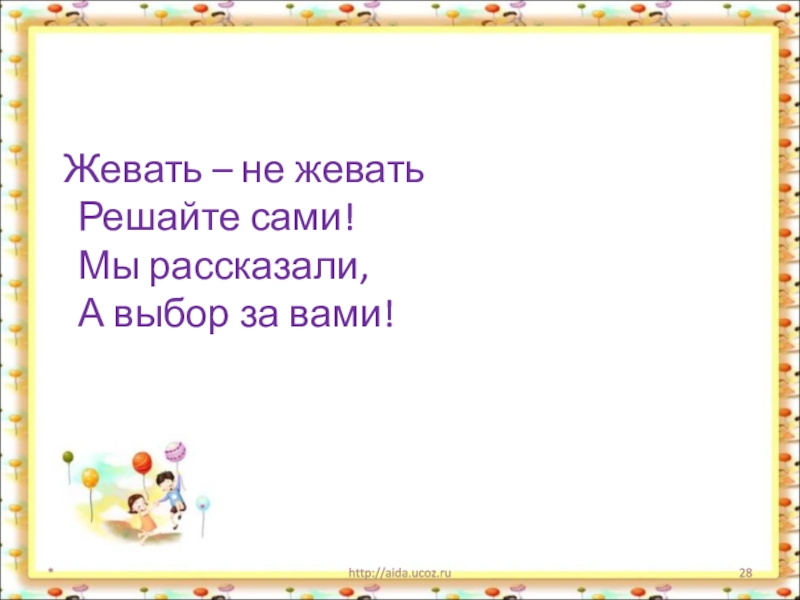 Это сайт презентаций, где можно хранить и обмениваться своими презентациями, докладами, проектами, шаблонами в формате PowerPoint с другими пользователями. Мы помогаем школьникам, студентам, учителям, преподавателям хранить и обмениваться учебными материалами.