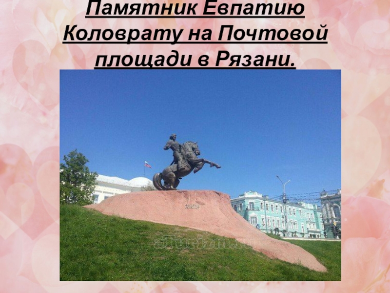 Слайд 4Памятник Евпатию Коловрату на Почтовой площади в Рязани.