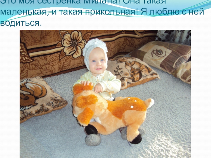 Слайд 9Это моя сестрёнка Милана! Она такая маленькая, и такая прикольная! Я