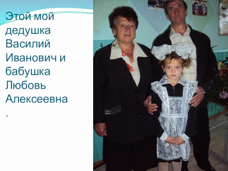 Слайд 7Этой мой дедушка Василий Иванович и бабушка Любовь Алексеевна.