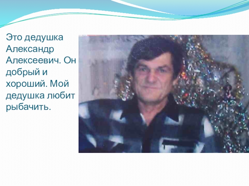 Слайд 6Это дедушка Александр Алексеевич. Он добрый и хороший. Мой дедушка любит