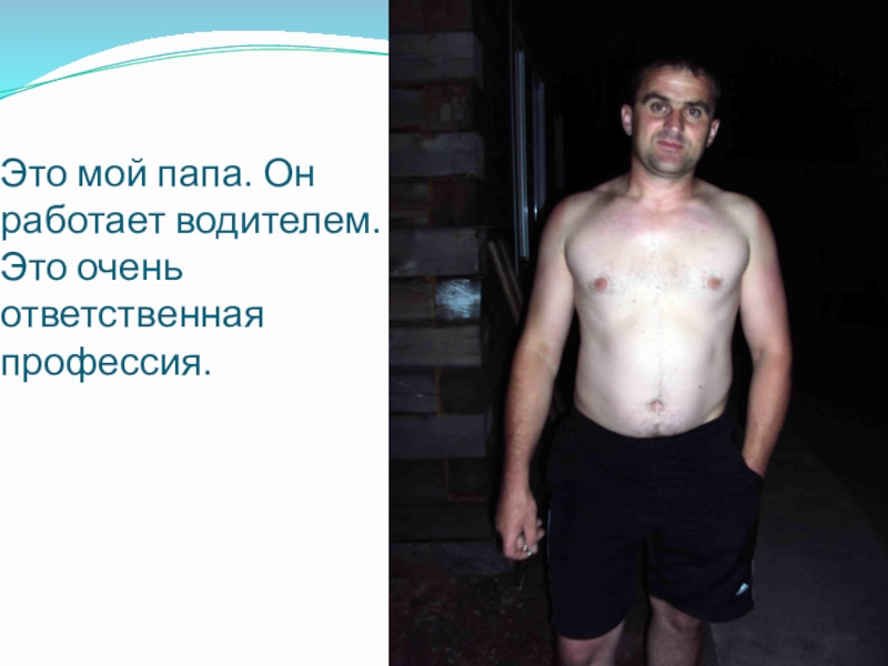 Слайд 4Это мой папа. Он работает водителем. Это очень ответственная профессия.