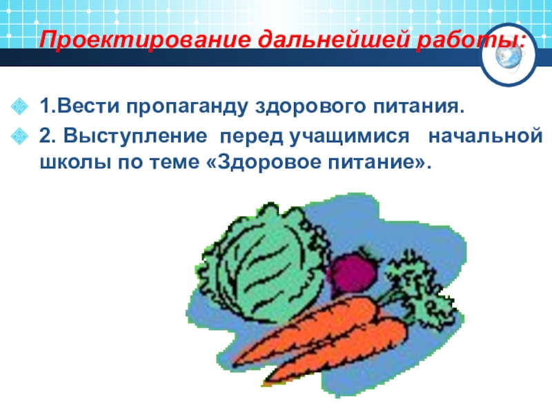 Слайд 36Проектирование дальнейшей работы: