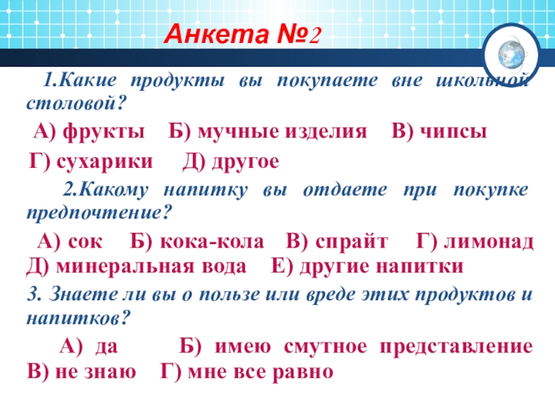 Слайд 9Анкета №2